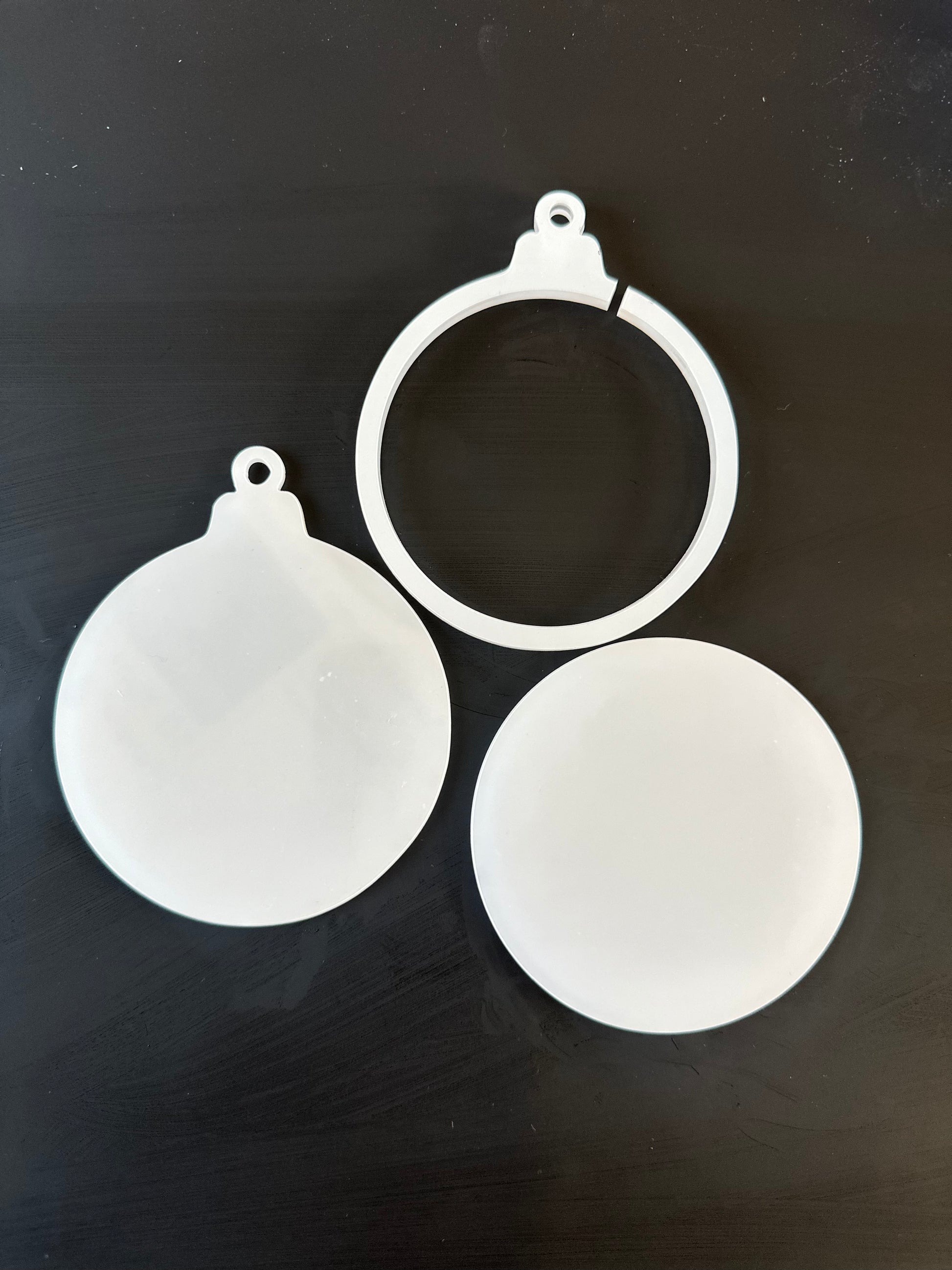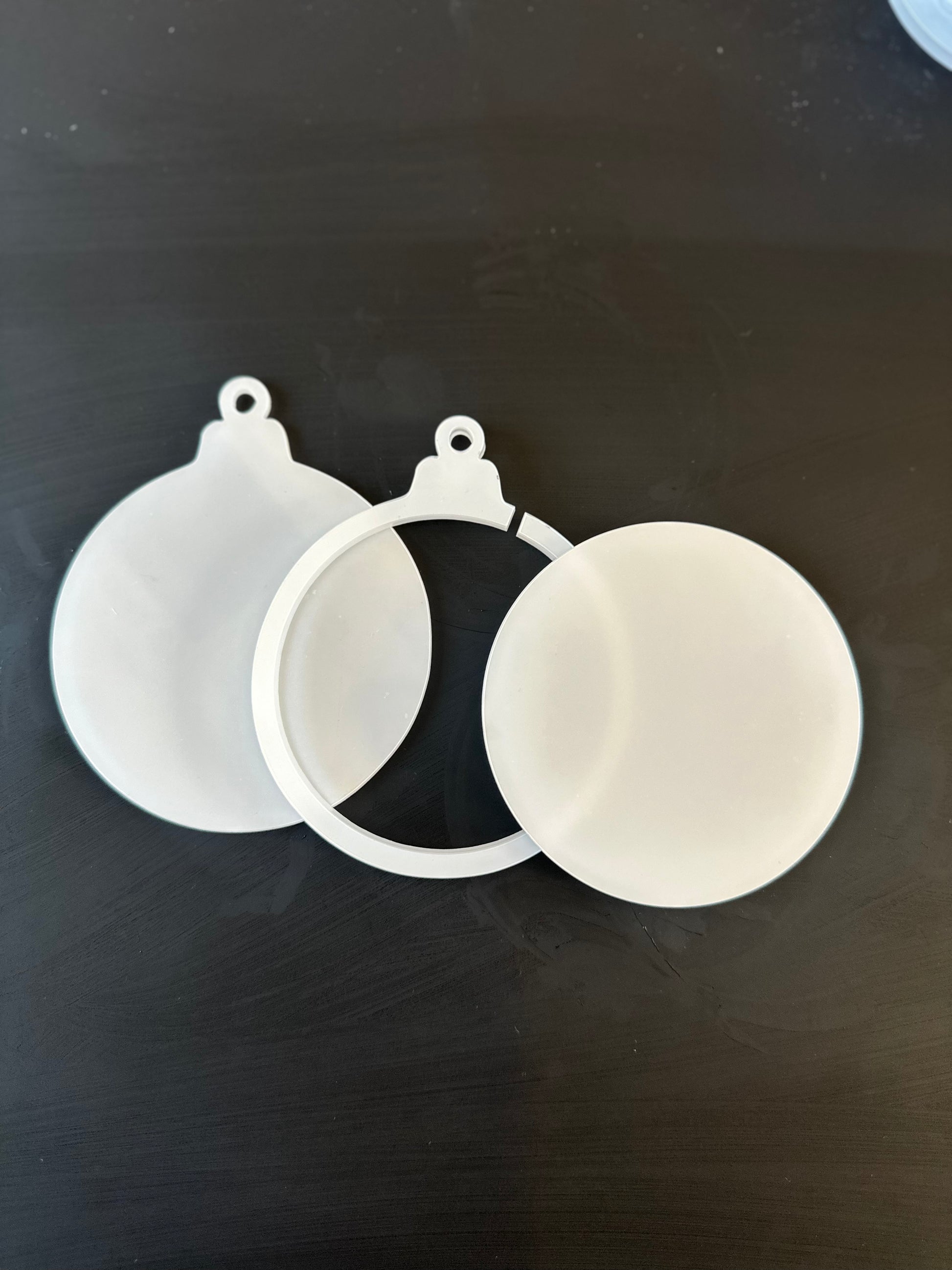 - Middle Spacer (5mm thick) – designed with a small hole along the rim, perfect for adding snowglobe solution, glitter, sequins, or faux snow.